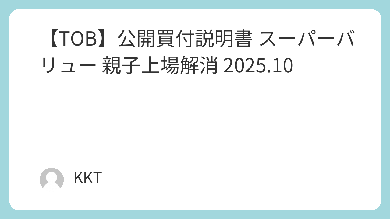一方で、TOB価格は市場プレミアム水準の範囲にとどまり、少数株主の評価との乖離には注視が必要である。